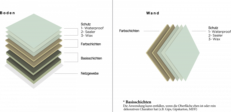 Die Oberfläche sollte nach Fertigstellung mindestens 48 Stunden nach Auftrag der Wax-Schicht nicht nass gewischt werden. Zudem empfiehlt sich unter Möbelstücke, welche auch erst 5 Tage nach Fertigstellung auf dem neuen Microcement abgestellt werden darf, Filzgleiter zu kleben.