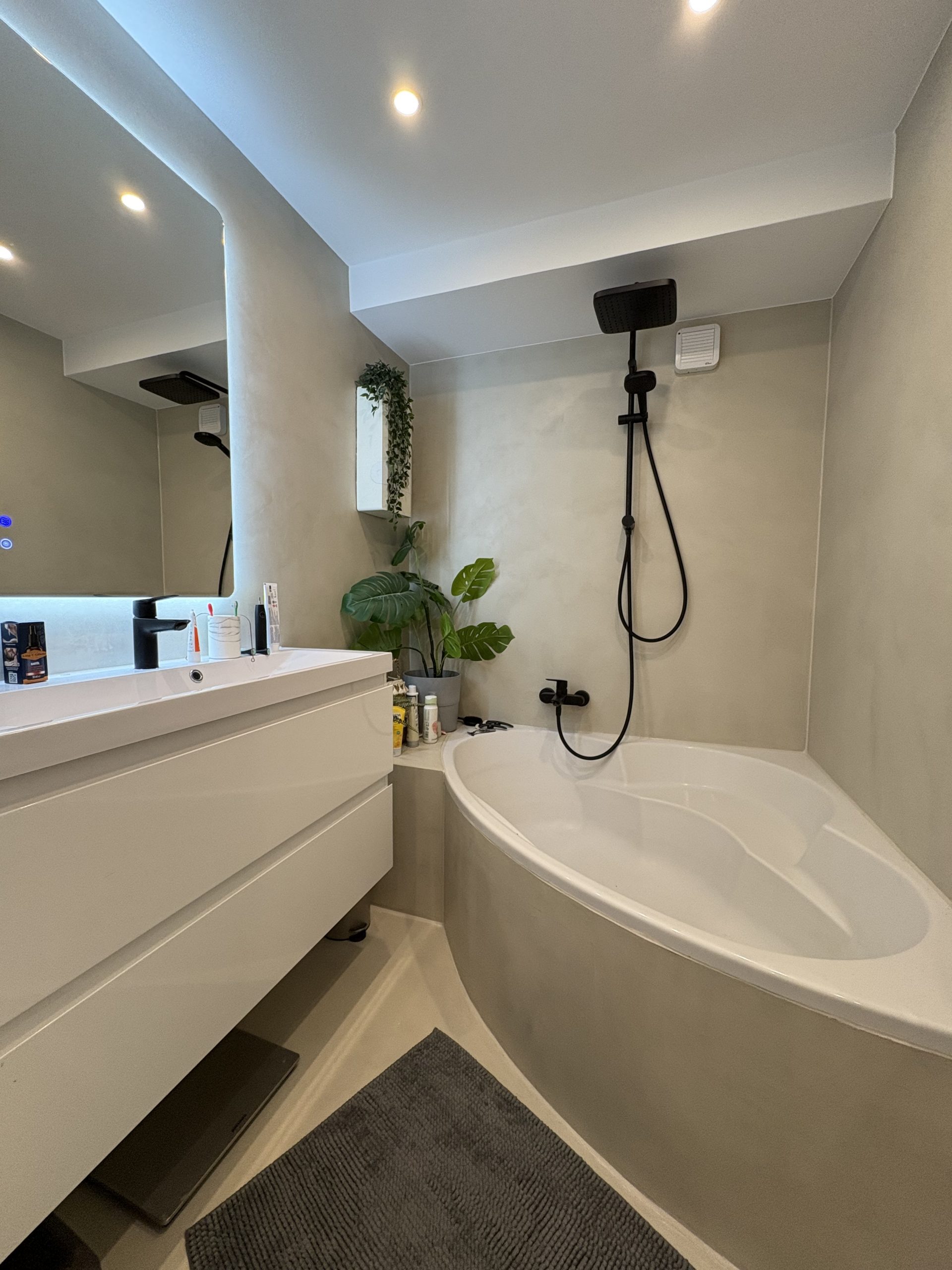 Mit San Deco Microcement können Sie Ihren Wohnraum in eine stilvolle und moderne Umgebung verwandeln. Unsere hochwertige, fugenlose Beschichtung eignet sich für den Innen- und Außenbereich, um Böden, Wände, Fassaden, Küchen und Bäder zu gestalten.