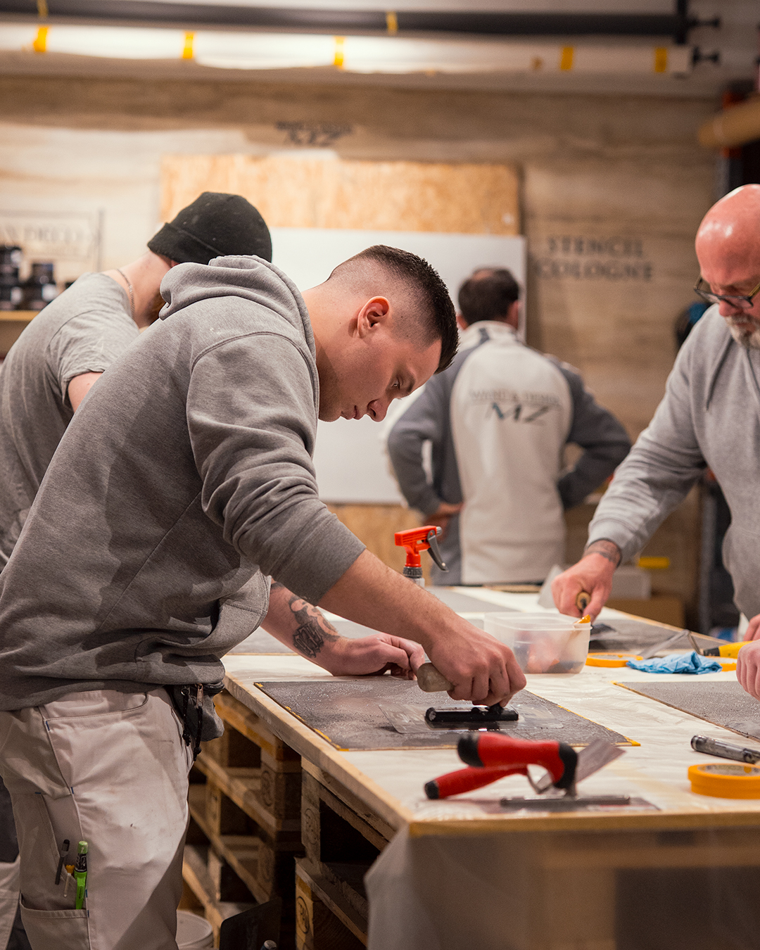 In diesem Workshop werden die Produkte vorgestellt, die innerhalb von zwei Tagen bearbeitet und angewendet werden können. Alle verfügbaren Techniken und Materialien für die Wandgestaltung werden ausführlich präsentiert. Dabei werden 8 ausgewählte Produkte besonders detailliert erklärt. Die Teilnehmer haben die Möglichkeit, diese Techniken Schritt für Schritt selbst anzuwenden und unter Anleitung sicherzustellen, dass sie korrekt und fachgerecht ausgeführt werden.